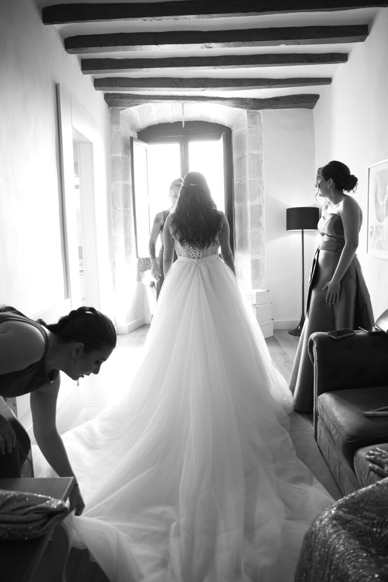 Their ceremony took place between tall trees and with the rolling Catalan landscape stretching out behind them, one of the most breathtaking views this venue offers. Their wedding truly reflected what makes a destination wedding near Barcelona so magical: Mediterranean light, natural beauty, and a setting full of history.